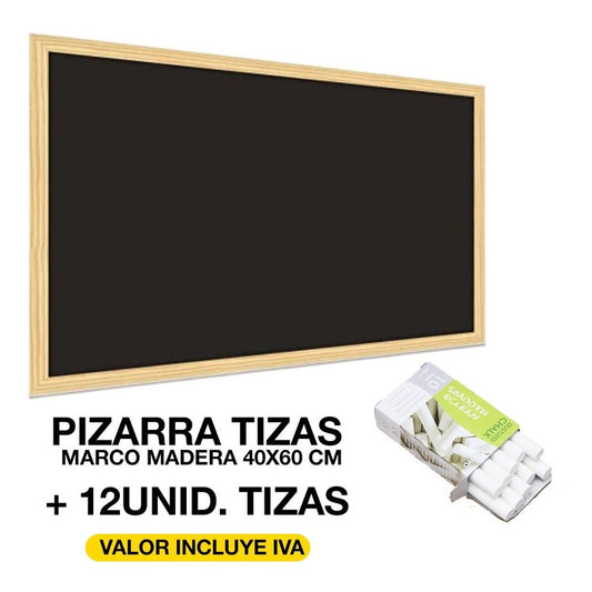 Pizarra Tizas Marco Madera 40x60 Cm + 12 Tizas