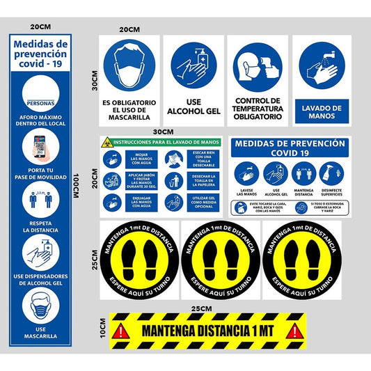 Pack Señalética Letrero Prevención Distancia Adhesivo
