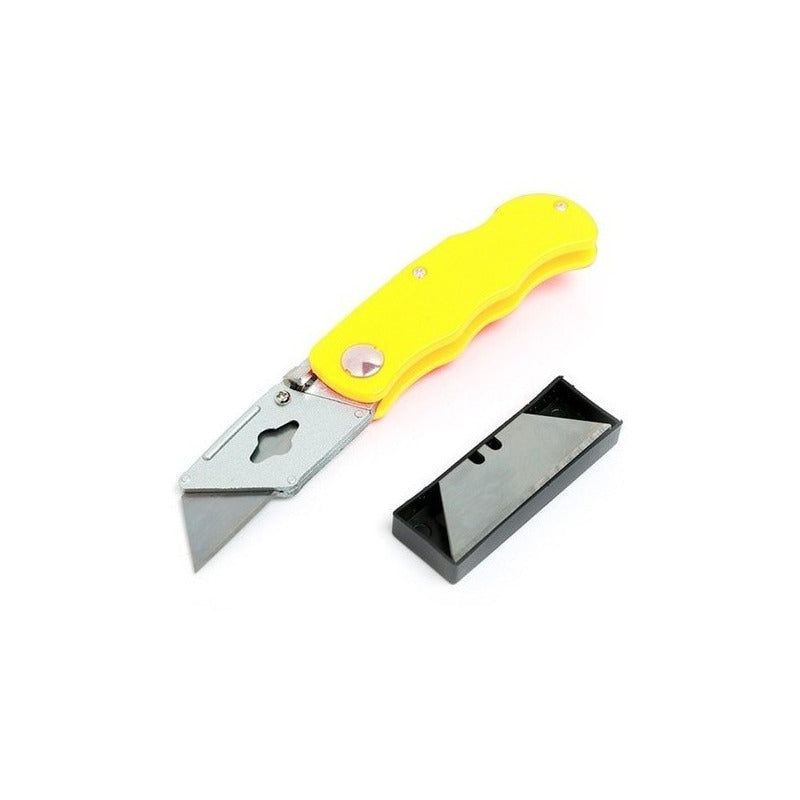 Cuchillo cartonero retráctil, La empuñadura es de plástico y diseñada para un mejor apriete, el cuchillo se puede ajustar en distintos niveles.