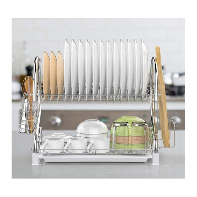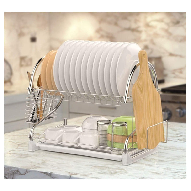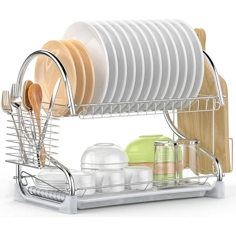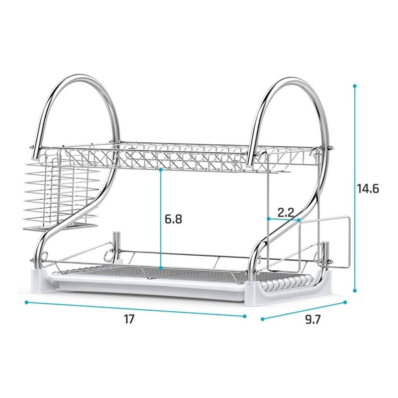Secador Escurridor de Vajilla de 2 niveles, Acero Cromado Medidas en Imagen están en Pulgadas. Capacidad de hasta 15 platos