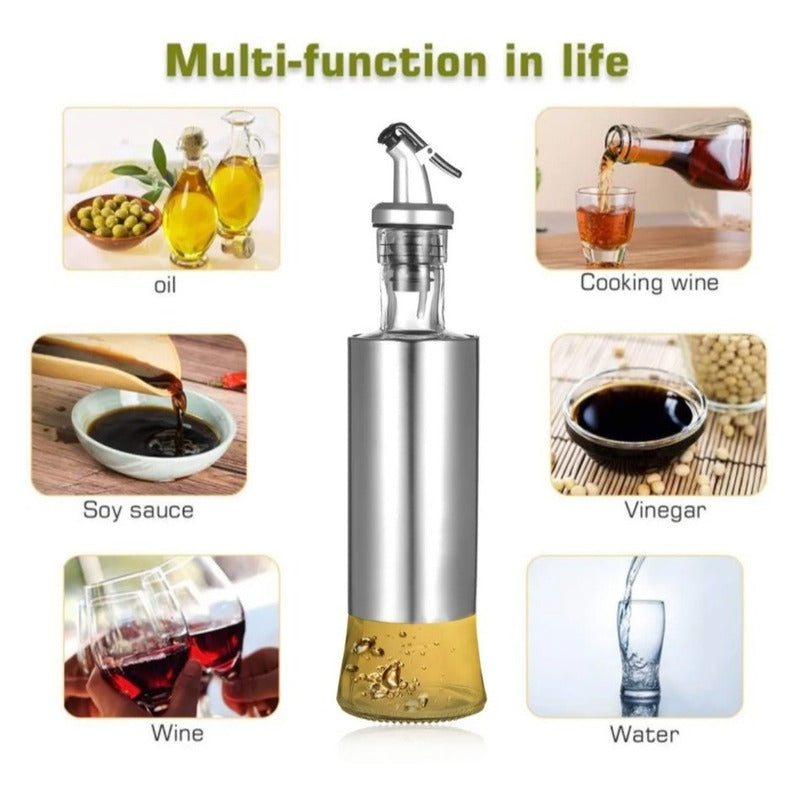 Este dispensador de aceite está hecho de vidrio y acero inoxidable con un diseño de boquilla libre de goteo que ayuda a controlar el volumen de aceite y extenderlo. Una botella de aspecto agradable y también funciona muy bien. Características: Hecho de acero inoxidable y vidrio que es duradero y fácil de limpiar. cuerpo de vidrio woniit reaccionar al calor más seguro y saludable.Fondo de vidrio es bueno para identificar el tipo de aceite y la cantidad restante.Boquilla libre de polvo con una tapa conveniente asegura que las moscas y otros pequeños insectos no entren. Con capacidad de 300 ml Tamaño perfecto y fácil de usar. FORMATO DE VENTA pack de 2 dispensadores (2 unidades).